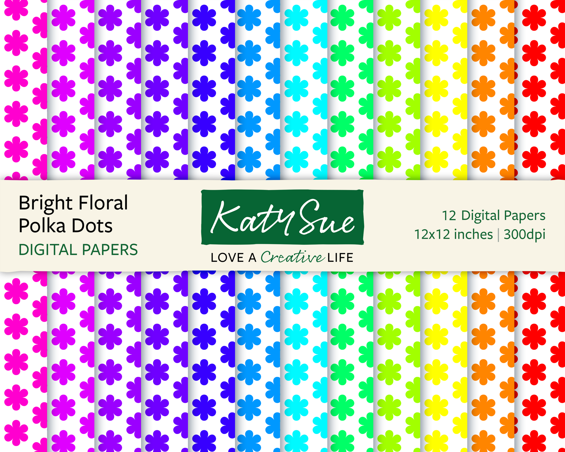 Bright Floral Polka Dots | 12x12 Digital Papers
