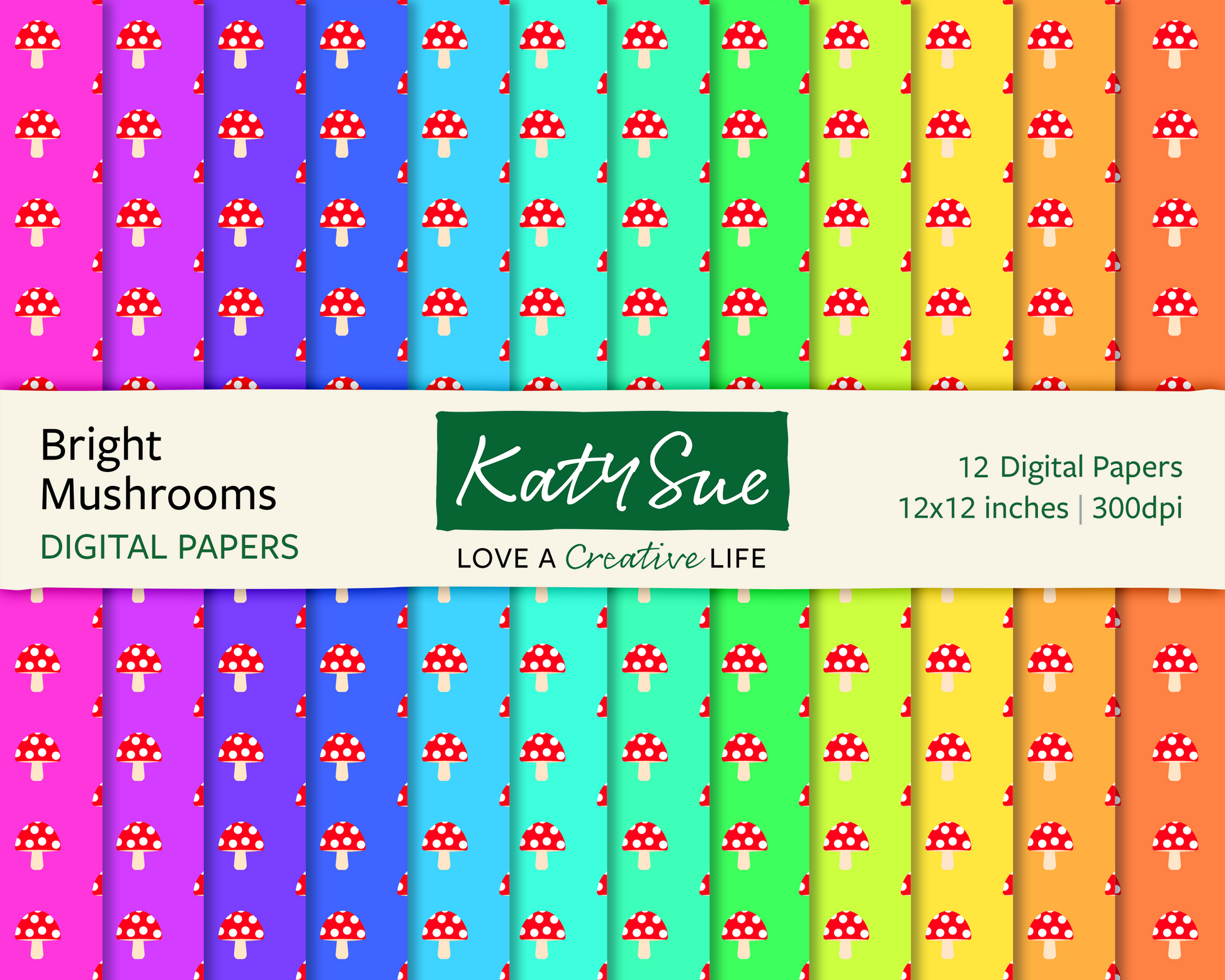 Bright Mushrooms | 12x12 Digital Papers