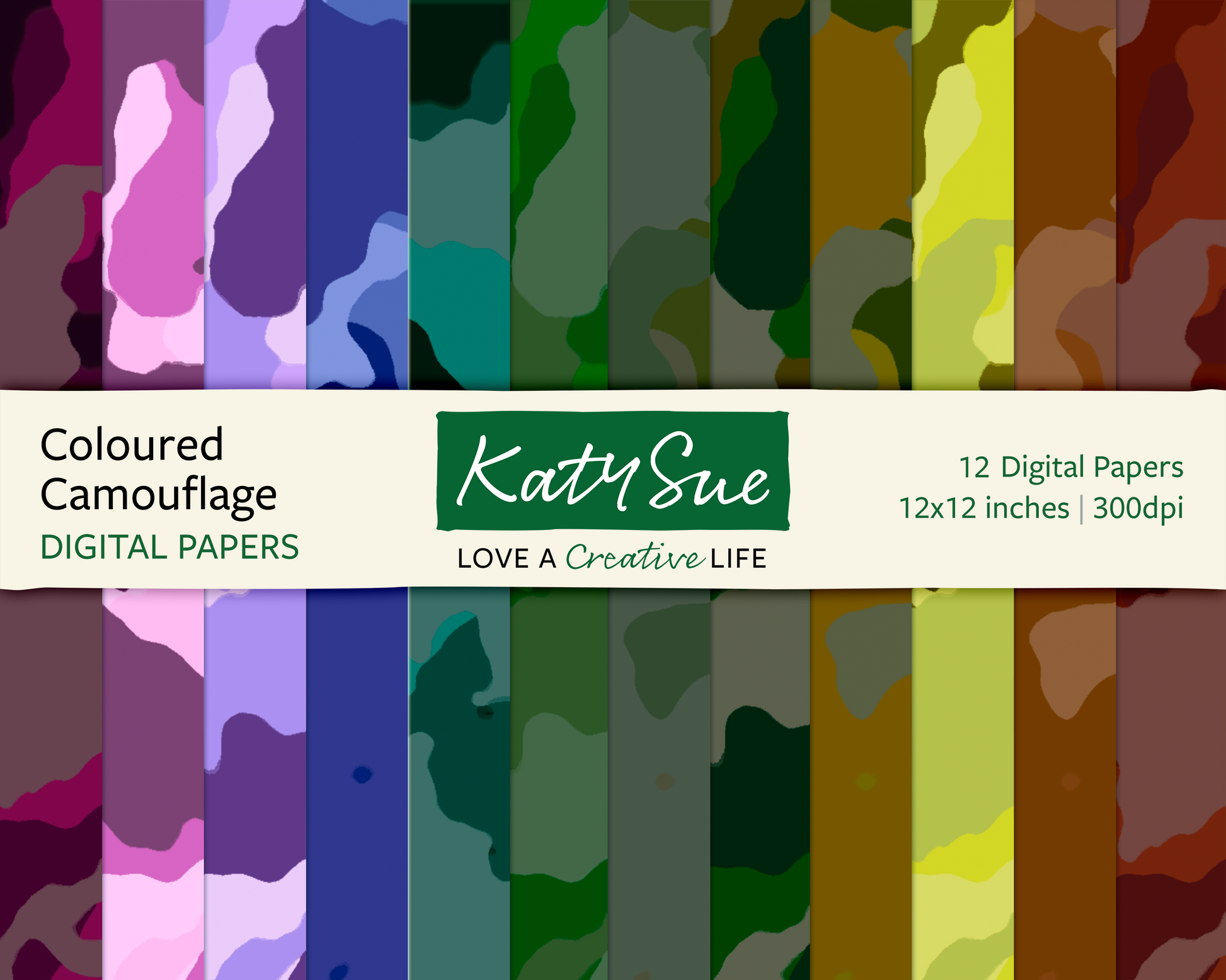 12 colourful camouflage papers for a wide variety of uses a great addition to your digital collection.