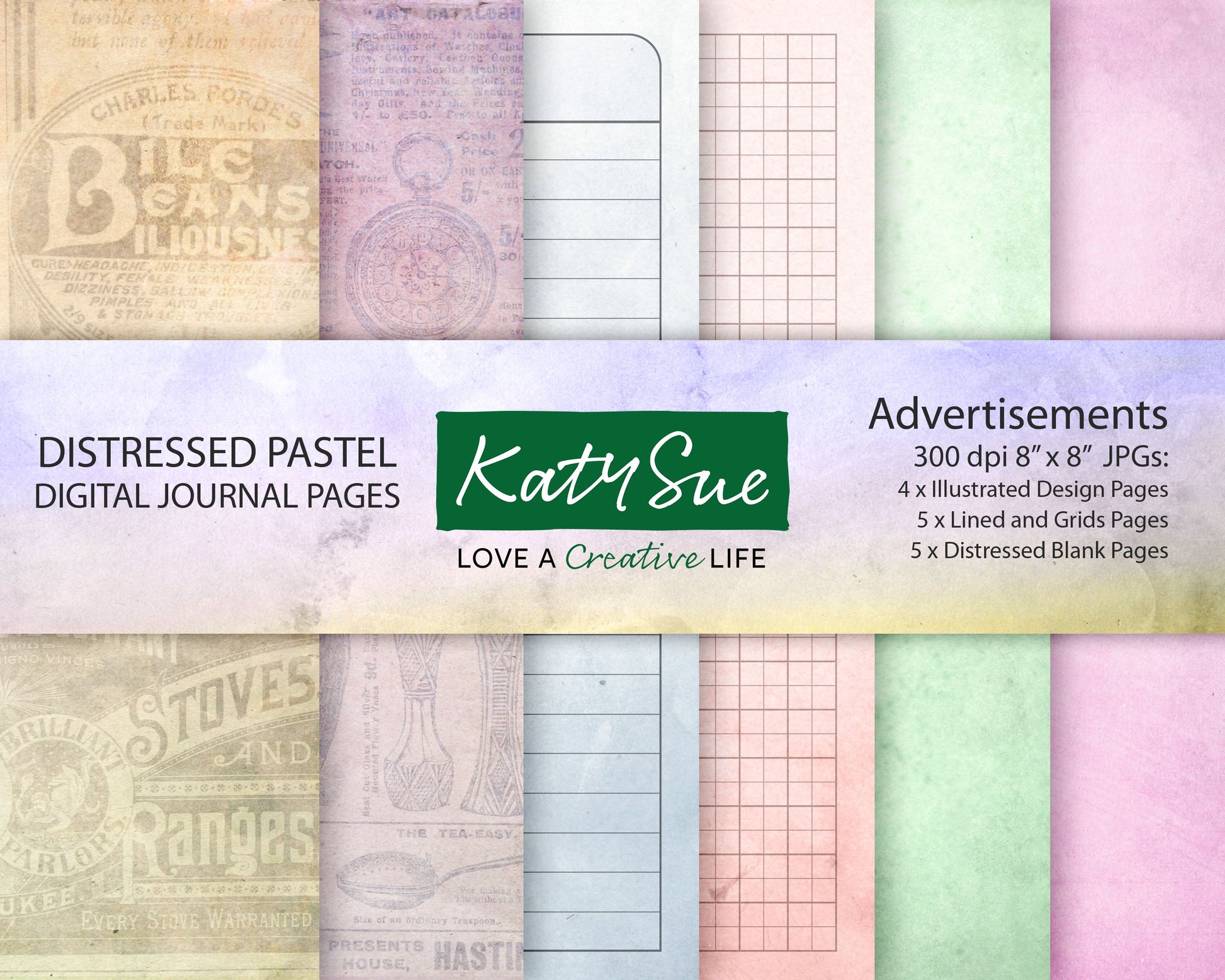 14 Distressed Pastel Digital Journal pages with an Advertisement theme. A must for any digital collection.