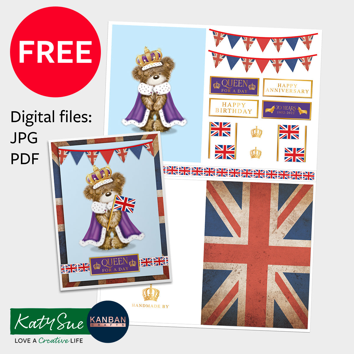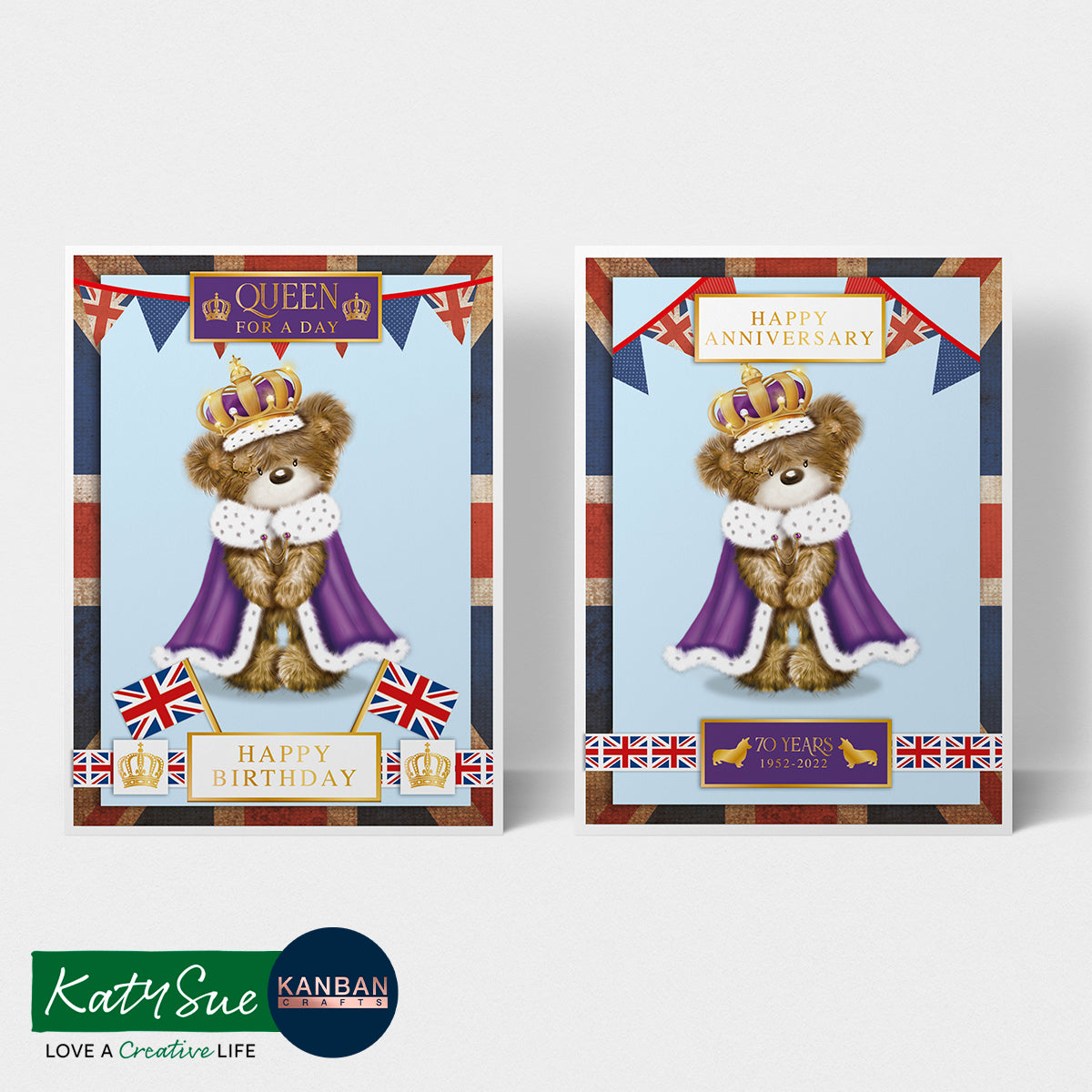 FREE! This Digital Card Making Kit has all the artwork you need to create A6 size cards featuring our Jubilee Edition Kanbear for birthdays, anniversaries or to mark this year's royal celebrations!